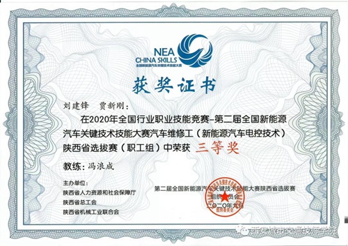 在2020年全國(guó)行業(yè)職業(yè)技能大賽——第二屆全國(guó)新能源汽車(chē)關(guān)鍵技術(shù)技能大賽汽車(chē)維修工(新能源汽車(chē)電控技術(shù))陜西省選拔賽(職工組)比賽中,西安城市交通技師學(xué)院教師劉建鋒、賈新剛榮獲本次大賽三等獎(jiǎng)。