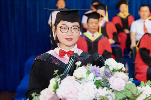 畢業生代表,文學院17級漢語言文學2班虞詩慧同學說:“感謝思源給了我揮斥方遒、散發光芒的舞臺,讓我得到了更好的成長。是你讓我沐浴著清晨的第一縷陽光,伴著瑯瑯讀書聲漫步在思源湖旁;是你讓我在安靜的自習室,暢游在知識的海洋……在這里,實現了我考研的夢想,我們一定會努力奮斗,自強不息,為實現自己的夢想,為實現中華民族的偉大復興貢獻自己的全部力量!
