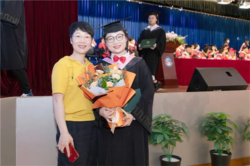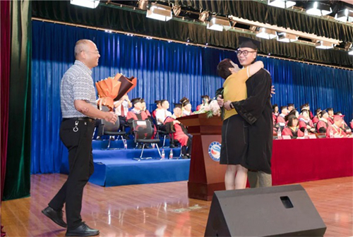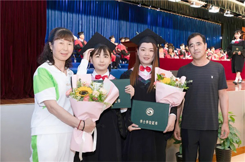 畢業生家長為畢業生獻花并表示祝賀