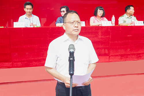 上午9:00,隨著雄壯的國(guó)歌聲響起,五星紅旗在運(yùn)動(dòng)場(chǎng)上空冉冉升起,迎風(fēng)飄揚(yáng)。大會(huì)正式拉開(kāi)帷幕。