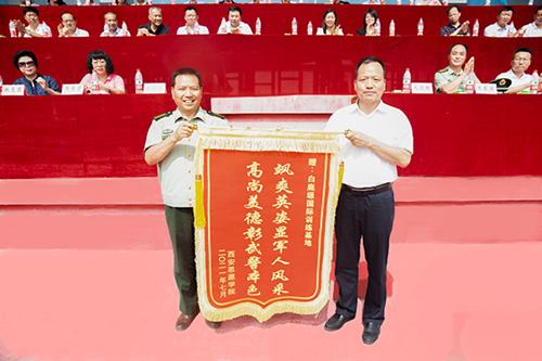 最后,由校黨委書(shū)記朱君強(qiáng)為承訓(xùn)單位贈(zèng)送了錦旗。在嘹亮激昂的軍歌聲中,本次軍訓(xùn)總結(jié)大會(huì)圓滿落下帷幕。