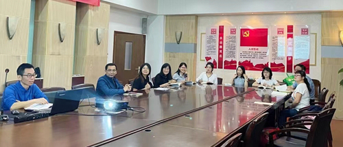 吳麗鎬(左一)組織教研室老師召開座談會現場