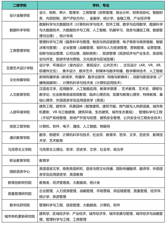 目前共有20000余名在校生,學校下設會計金融學院、數(shù)據(jù)科學學院、工商管理學院、文化傳媒學院、人文教育學院、艾德藝術設計學院、信息工程學院、人居環(huán)境學院、職業(yè)教育學院、通識教育學院、馬克思主義學院、國際語言中心等12個教學機構。