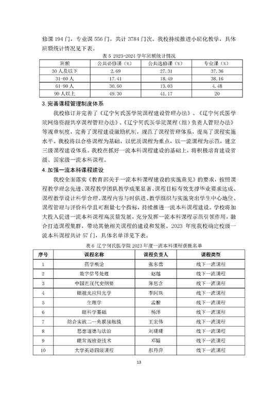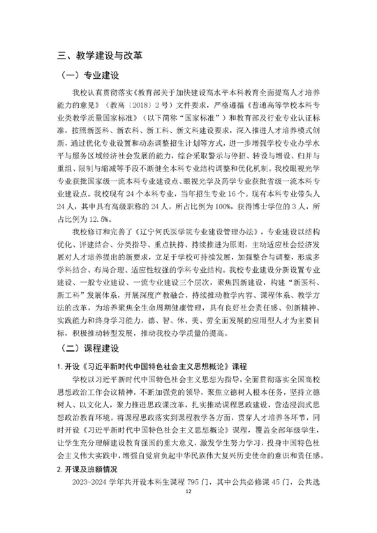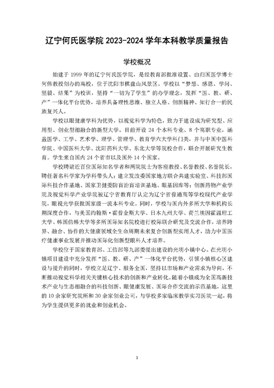 遼寧何氏醫學院2023-2024學年本科教學質量報告