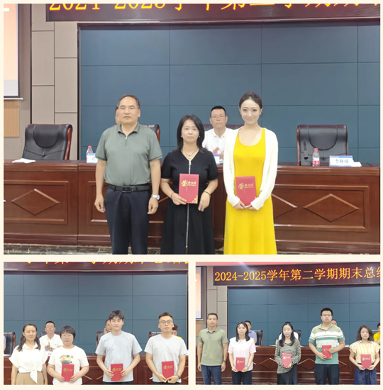 與會領(lǐng)導(dǎo)為校級教學(xué)競賽獲獎(jiǎng)教師頒發(fā)榮譽(yù)證書,表彰其教學(xué)創(chuàng)新成果。