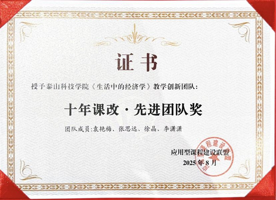 泰山科技學(xué)院《生活中的經(jīng)濟(jì)學(xué)》教學(xué)團(tuán)隊(duì)榮獲應(yīng)用型課程建設(shè)聯(lián)盟全國先進(jìn)團(tuán)隊(duì) |