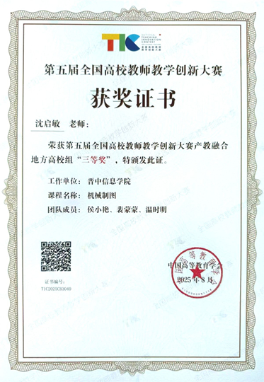 8月16—19日,由教育部高等教育司指導、中國高等教育學會主辦的第五屆全國高校教師教學創(chuàng)新大賽全國現(xiàn)場賽在北京理工大學舉辦。晉中信息學院智能工程學院沈啟敏團隊喜獲產(chǎn)教融合賽道全國賽三等獎,取得歷史性突破佳績。