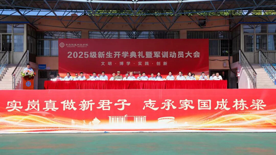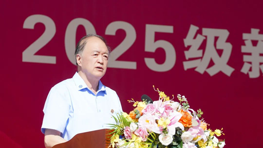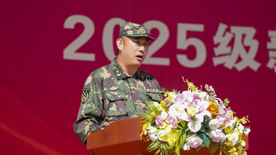 大會(huì)伊始,畢憲順校長(zhǎng)發(fā)表致辭,學(xué)校將以“扣好人生第一粒扣子”為核心,通過(guò)“14天軍訓(xùn)筑基+半學(xué)期深化養(yǎng)成”的遞進(jìn)式培養(yǎng)模式,把軍事訓(xùn)練、傳統(tǒng)文化浸潤(rùn)、專業(yè)認(rèn)知引導(dǎo)深度融合,構(gòu)建“訓(xùn)——學(xué)——行——悟”一體化育人體系,幫助大家快速適應(yīng)大學(xué)生活,筑牢成長(zhǎng)根基。畢校長(zhǎng)向同學(xué)們提出了三點(diǎn)殷切希望:立大志,以理想之光照亮征程;明大德,用品格之力涵養(yǎng)底色;成大才,以實(shí)干之舉錘煉本領(lǐng)。最后,畢校長(zhǎng)祝愿新同學(xué)們?cè)诤阈切@逐夢(mèng)揚(yáng)帆,早日成長(zhǎng)為“德行好、學(xué)力強(qiáng)、理論通、實(shí)戰(zhàn)勤、國(guó)際化”的時(shí)代新人。