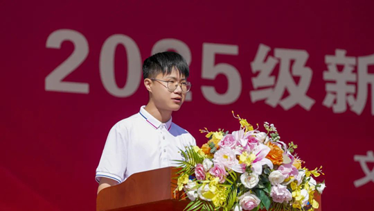 2025級(jí)新生代表、藝術(shù)與傳媒學(xué)院楊適寧同學(xué)作為新生代表發(fā)言,他代表全體2025級(jí)新生,作出三點(diǎn)承諾,要在接下來(lái)的軍訓(xùn)和學(xué)習(xí)生活中:嚴(yán)守紀(jì)律,磨礪硬功;團(tuán)結(jié)互助,共筑集體;勇于探索,敢闖敢創(chuàng)。