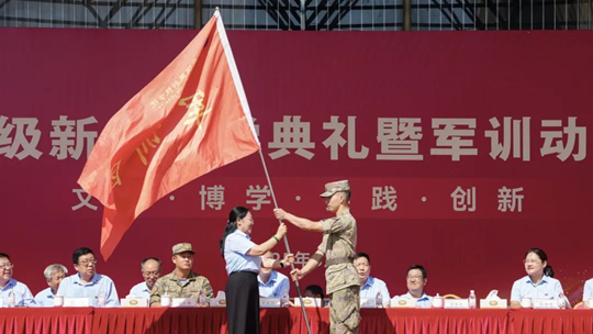 團(tuán)旗指引方向,營(yíng)旗凝聚力量。徐愛(ài)民校長(zhǎng)向教官團(tuán)授軍訓(xùn)團(tuán)旗,陳海艷副校長(zhǎng)向各院系軍訓(xùn)連隊(duì)授軍訓(xùn)營(yíng)旗。莊嚴(yán)的授旗儀式,象征著使命與責(zé)任的傳遞,更代表著信任與期望的托付。