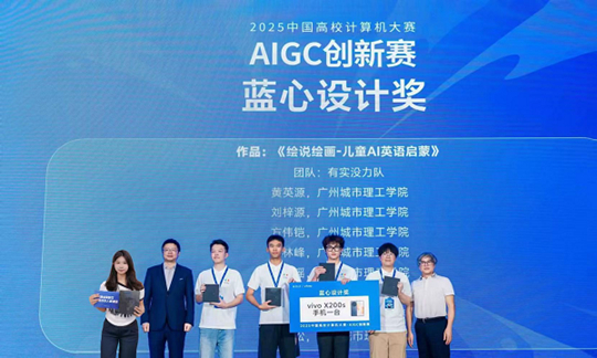 8月25日,“2025中國高校計算機大賽-AIGC創新賽”應用賽道決賽答辯在東莞圓滿落幕。決賽采用線下答辯形式,由來自全國八大賽區的高校教師與vivo公司專家組成的10人評審團共同評審。35支決賽隊伍最終決出一等獎5隊、二等獎10隊、三等獎20隊,并評選出藍心設計獎1隊及藍心創新獎1隊。廣州城市理工學院計算機工程學院/大數據學院派出的學生隊伍在本次競賽中表現優異,與北京大學、北京郵電大學、南開大學、同濟大學等高校同臺競技,最終榮獲全國一等獎及藍心設計獎,充分展現了廣州城市理工學院學子扎實的AIGC技術基礎與卓越的創新應用能力。