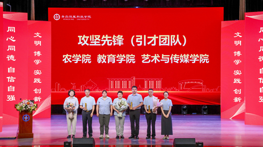 唐甜甜副校長為“攻堅先鋒(引才團隊)”獲獎者頒獎。