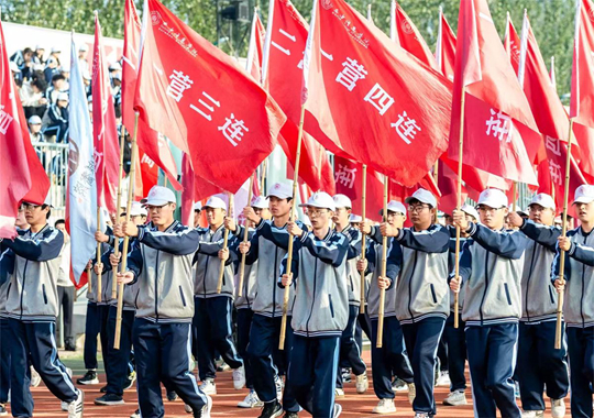 伴隨著激昂的旋律,分列式表演方陣率先向運動場中央進發,口號洪亮震徹全場,隊列行進間步伐統一、動作規范,淋漓盡致地展現出新生們紀律嚴明的優良作風;旗語方陣的同學們揮舞著紅黃旗幟,手臂舒展間,“無聲的信號”準確傳遞,颯爽的姿態成為場上一道靈動的風景;刺殺操方陣的同學們手持鋼槍,一擊一打,一步一踏,靈活自如;應急棍方陣的表演堪稱力量與紀律的完美融合,同學們雙手握棍,劈、掃、戳、擋等動作整齊劃一,每一個姿態都挺拔堅毅;警棍盾牌方陣緊接著亮相,同學們左盾右棍,盾擋穩固、棍擊迅猛,連貫攻防伴著整齊步伐,將器械配合的默契與戰術素養展現無余;教官戰術表演壓軸出場,進攻、狙擊、反恐……招式精明,步履鏗鏘,“硝煙彌漫”中為現場師生帶來震撼的視覺盛宴。