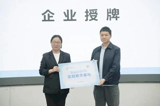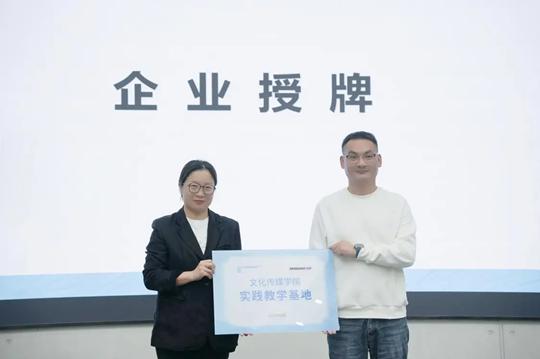 在授牌儀式上,文化傳媒學院副院長曹小娟依次向北京童立方文化品牌管理有限公司、陜西秦之泉飲品集團銷售有限公司、西安華商網絡傳媒有限公司、浙江燃點創新影視科技有限公司、華商傳媒風華年文化發展有限公司共五家企業授予“實踐教學基地”牌匾,為學生構建起直達行業現場的穩定實踐平臺。學院將持續與多領域雇主企業深化合作,拓展多元實踐渠道,助力學生開闊視野、積累實戰經驗。