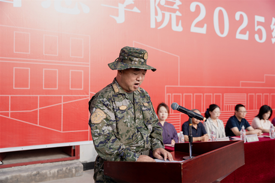 2025級軍訓團團長梁廷指出,作為大學生活的“第一課”,軍訓不僅是國防教育的關鍵一環,更承載著錘煉新生品格的重要意義。他強調,今年正值中國人民抗日戰爭暨世界反法西斯戰爭勝利80周年,在這樣的歷史時刻開展軍訓更具特殊意義。他希望同學們在訓練中深刻感悟偉大抗戰精神,傳承紅色基因,厚植家國情懷,褪去青澀、錘煉意志,在整齊的步伐與嘹亮的口號中激昂青春斗志,主動將國家安全意識與歷史使命感融入心中,以飽滿的熱情、昂揚的姿態參與訓練,把愛國情、強國志轉化為報國行,為國家發展與民族復興貢獻青春力量。