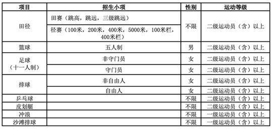 2.具備與我校招生項目要求對應(yīng)的運動員技術(shù)等級資格,2025年報名考生的等級證書夏季項目審批日期為2015年1月1日至2025年3月10日,考生運動員技術(shù)等級以“國家體育總局運動員技術(shù)等級系統(tǒng)”公示的數(shù)據(jù)信息為準(zhǔn)。