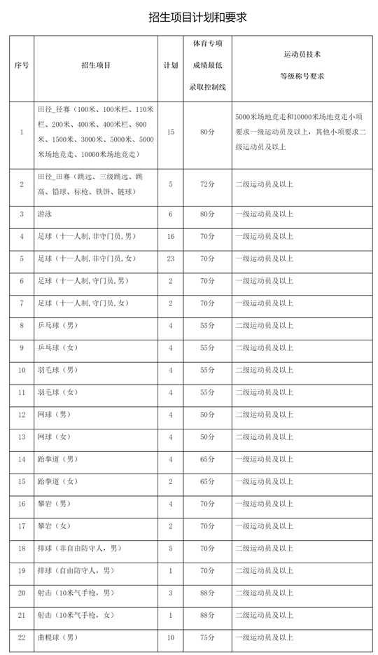 (二)體育專項成績最低錄取控制線:詳見招生項目計劃和要求表。