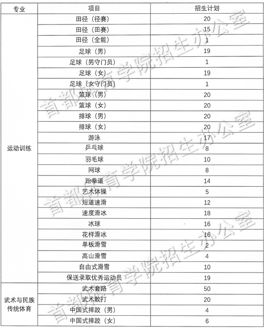 首都體育學(xué)院2025年運動訓(xùn)練、武術(shù)與民族傳統(tǒng)體育專業(yè)分項目招生計劃 |
