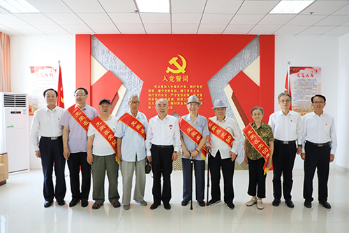 會上,張主社代表校黨委向6位老黨員代表致以節日的問候和崇高的敬意,并對學校發展情況進行介紹。他表示,老黨員們將半生的精力都奉獻給了黨、奉獻給了學校,為學校事業發展作出了重要貢獻,他們的精神值得年輕黨員學習和傳承。希望老黨員們能夠堅守初心使命、永葆政治本色,一如既往地關心支持學校事業發展。全校廣大黨員干部要以“光榮在黨50年”的老黨員為榜樣為標桿,進一步夯實理想信念的思想根基,進一步煥發干事創業的奮斗激情,進一步發揚愛國愛校的奉獻精神,為辦好人民滿意的教育積蓄精神力量。