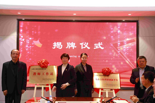在現場與會人員的見證下,李錦元、郭穎代表校企雙方簽訂校企戰略合作協議,張主社、郭穎代表校企雙方為此次受聘的客座教授、講師頒發聘書,校企雙方領導共同為“產教融合協同育人基地”“教師工作室”“校企合作科研創新平臺”揭牌。
