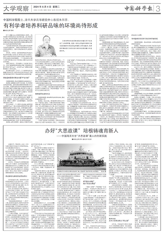 2024年6月4日出版的《中國科學報》“大學觀察”版