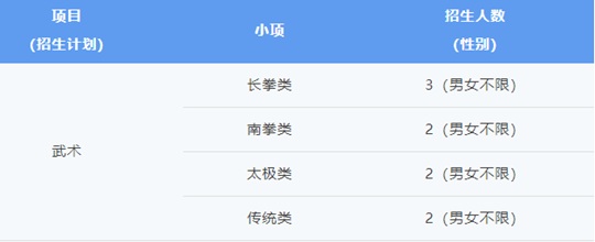 2025年計劃招收武術項目共計9人,具體招生人數如下:
