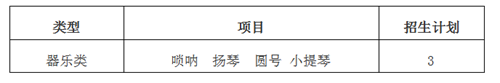 1.學校按照藝術團建設需要,在藝術水平測試成績不低于80分的考生中,按藝術水平測試成績排名為序擇優認定給予入選資格的考生(如遇同分,按照嗩吶、揚琴、圓號、小提琴順序依次給予資格),錄取時按照公示順序錄取,錄滿3人為止。入選考生人數不超過我校高水平藝術團招生計劃數的2倍。