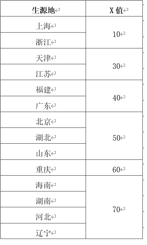 高考成績達到北京、天津、上海、浙江、山東、海南、江蘇、廣東、福建、湖南、湖北、遼寧、河北、重慶確定的相關最低錄取控制參考分數線上X分及以上,經生源地省級招生辦公室批準后,我校給予錄取。