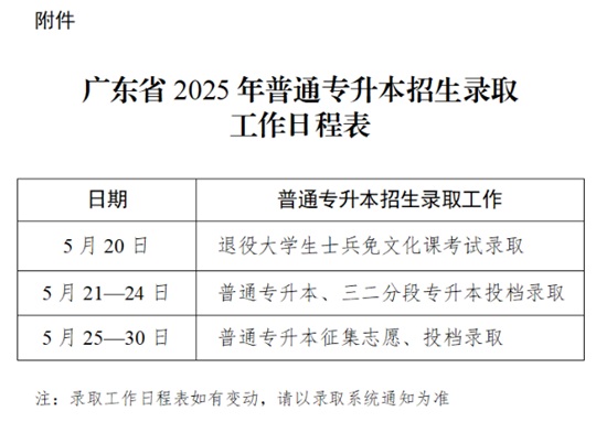 附件:廣東省2025年普通專升本招生錄取工作日程表