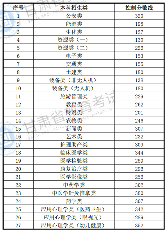 2025年甘肅省普通高校高職(專科)升本科統(tǒng)一考試招生錄取控制分?jǐn)?shù)線公告 |