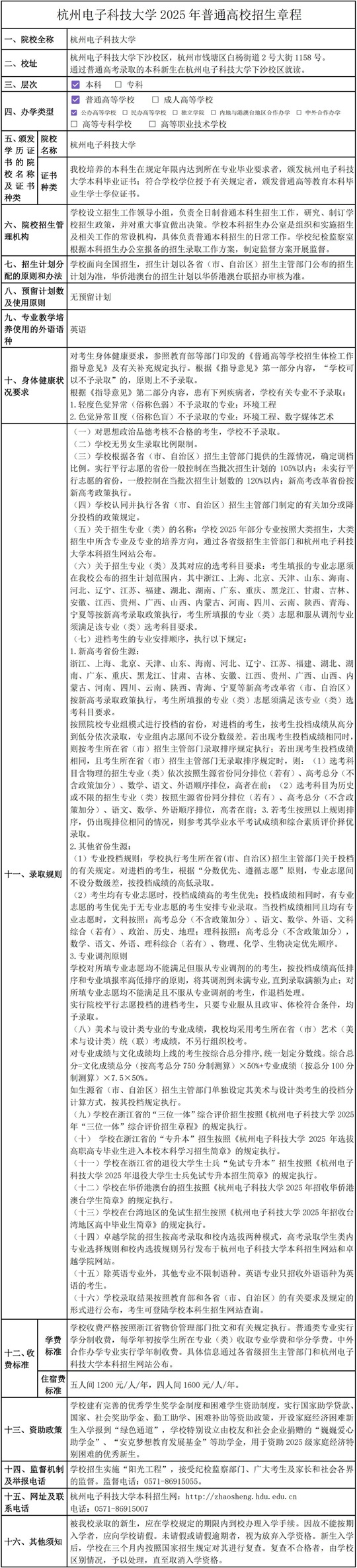 杭州電子科技大學(xué)2025年普通高校招生章程