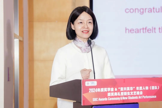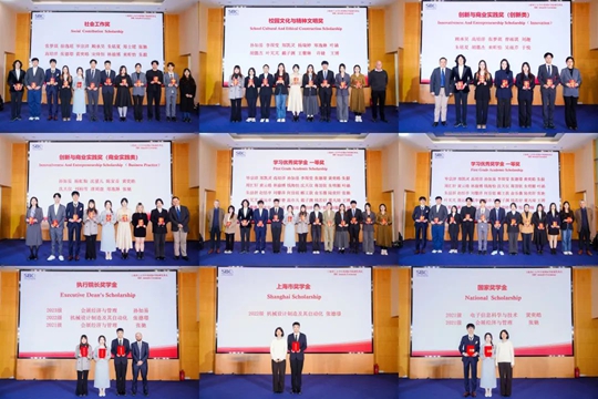首先,蔡卉介紹了學院獎學金的評定情況。在2024年度,共有317名優秀學子榮獲各類獎學金,其中3名同學榮獲學院執行院長獎學金,1名同學榮獲上海市獎學金,2名同學榮獲國家獎學金。隨后,由2024年度國家獎學金、執行院長獎學金獲得者張馳作為學生代表發表獲獎感言。她分享了自己的成長歷程與感悟,她表示,自己在學院“責任領導力、創業與創新、文化同理”三大育人理念的培養下,不斷突破自己勇敢創新,才收獲了如今的成績。
