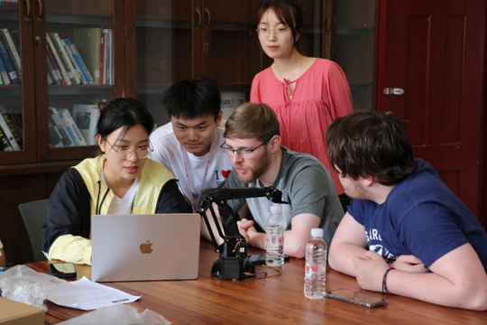 來自利物浦約翰摩爾大學工程技術學部方程式賽車隊的學生與中英國際學院創新團隊進行科創項目共創,完成機器人對抗項目(Robo Vigor)和慧凈·一體化農業機器人項目(AgriRomer)的國際項目優化,并于6月5日在學院黨委副書記、副院長蔡卉的帶領下前往上海師范大學進行成果展示匯報,作為第三屆“利物浦在上海文化活動日”活動的環節之一,為上海與利物浦建立姐妹城市25周年送上一份中英國際學院“雙創賀禮”。