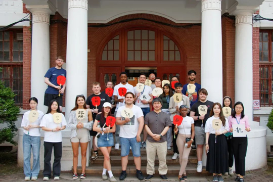 三位老師分別為夏校學生帶來書法、剪紙、太極三場文化體驗課,中外學生前往軍工路校區,參觀學校圖書館、滬江國際文化園、智慧教室等現代化智能化教學設施。來自英國的Ignace Kitu同學表示:“在中國書法課中,書法老師將四十余年的經驗融入課程中,扶著我的手一筆一劃地指導我寫好每一個字,我從中感受到中國傳統文化的獨特魅力和博大精深,更學習到勇敢和堅持的意義,我想這種精神值得我終身學習!眮碜圆ㄌm的Pawel Przedaszek同學精美的剪紙作品,贏得在場師生的贊嘆,他激動地表示:“剪紙是很精細的藝術,波蘭剪紙(wycinanki)也以其明亮的對比色彩與對稱工藝而聞名世界。中國剪紙和波蘭剪紙二者制作工藝相似,又各具藝術風格與特色!毕男W生們和學院學生志愿者一起“打卡”豫園、城隍廟、上海中心等多個知名地標,在上海的大街小巷浸潤于海派文化,在交流中不斷加深了中外學生之間的友誼。