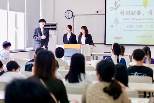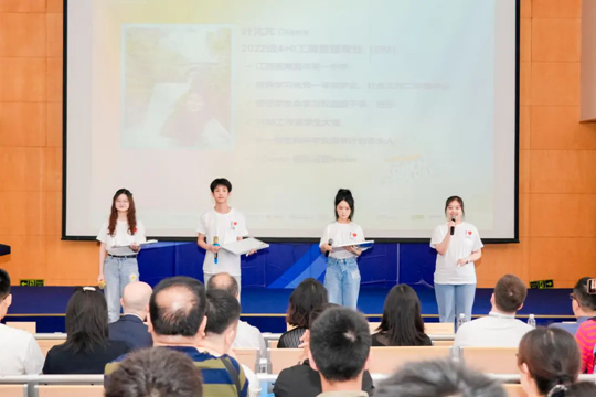 為進一步展現學院優秀學生風采,2022級工商管理專業的葉芃芃、薛錦、劉欣悅和2023級機械工程專業的凌濠作為學生代表發言,他們從課堂學習、學生社團活動、課余生活和校園周邊四個角度暢談了在中英國際學院的點點滴滴和成才故事。
