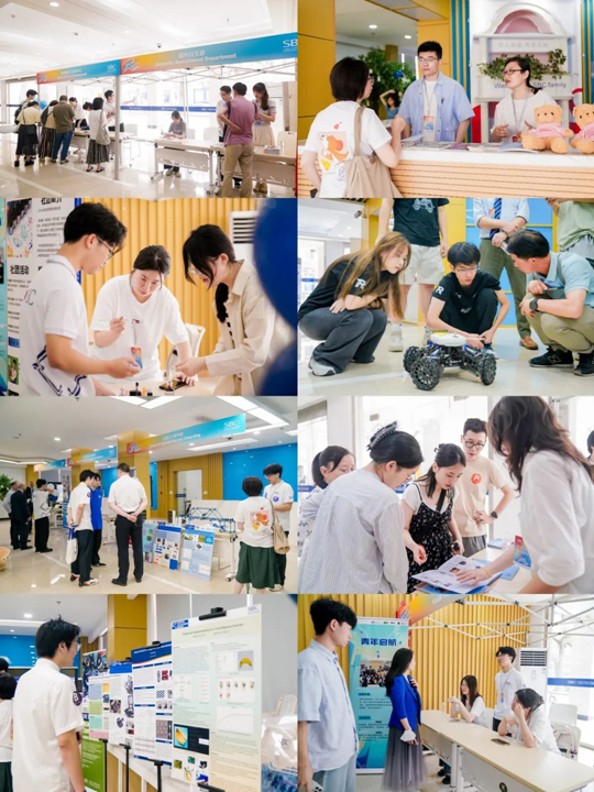在教學樓一樓大廳,各學生社團與支持學生相關的內設部門精心布置的咨詢展臺吸引眾多學生和家長的目光,充分展現學院學生多面風采,也為學生和家長提供點對點、面對面答疑解惑。榮獲多項國家級獎項的“Robo Vigor機器人”賽隊和星墨“Starry Ink”社團,分別為大家演示自主設計組裝的“機器人”戰車設備和展示自主研發的彩色墨水。