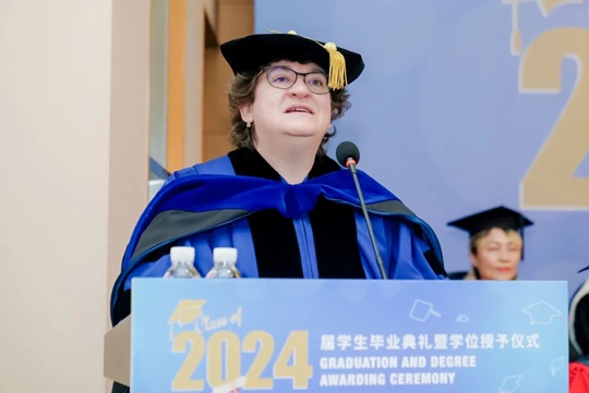 利物浦約翰摩爾大學副校長Laura Bishop在致辭中表示:“雙方院校在人才培養理念和目標上高度契合、深度融合,并以高質量的學位課程建設推動中英合作辦學高質量發展。大學四年的學習生活,中英國際學院學子們具備了國際勝任力和優秀的綜合素養,希望同學們在新的征程上,不斷提升自我,豐富閱歷、增長才干、積蓄力量,繼續書寫屬于自己的精彩篇章。”