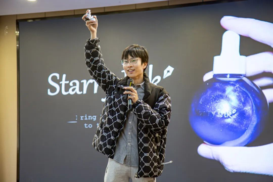 首場講座以校友創業分享啟幕。學院2015級校友、星墨StarryInk品牌創始人余昊源以“讓世界‘寫’滿中國色彩:墨水品牌的創新與破圈”為題,講述從校園實驗室到國際市場的創業歷程。他通過展示產品研發手稿、海外參展影像等資料,復盤企業戰略轉型路徑,重點解析榮獲國際獎項的“冷萃墨水系列”(Cold Brew Ink)如何將植物染料萃取技術與現代美學結合,開創墨水制造新范式,打造文化輸出創新樣本。余昊源還從創業者視角,為在校生梳理職業發展路徑與團隊分工邏輯,并針對創業初期關鍵問題提供實操建議,激發學生對創新與品牌國際化的深層思考。
