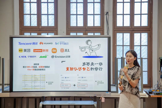 收官講座由2023屆校友梅佳蓉主講,圍繞申研與求職兩大議題展開。在申研板塊,她以時間軸拆解申請全流程,強調“早規劃、早準備”的重要性,并通過案例解析個人陳述撰寫要點及材料遞交規范,分享規避風險的實用技巧。針對求職,梅佳蓉提出“崗位需求-個人優勢雙向匹配”方法論,結合自身實習經歷,闡釋如何通過數據量化成果、精準匹配關鍵詞提升簡歷競爭力,并傳授面試應答技巧。她以“實習是一場重新認識自己的修行”總結實踐經驗的價值,為學弟學妹指明職業探索方向。