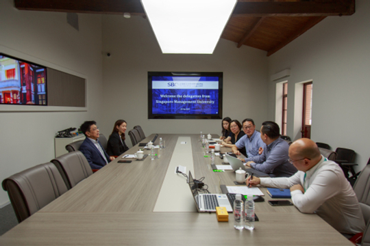 會上,雙方就高層次項目、訪學交換項目、聯合培養等方面的具體落實進行了深入探討。會后,新加坡管理大學代表團參觀了復興路校區校史館。