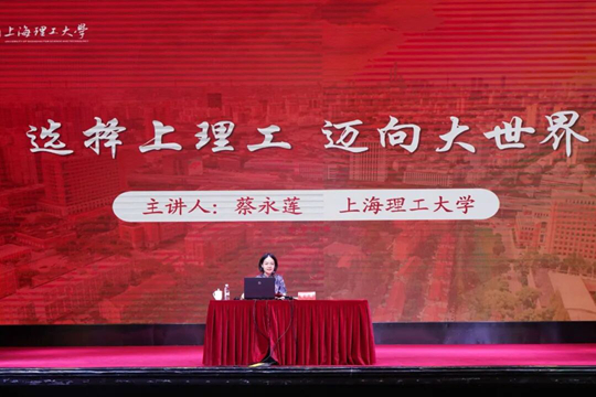 在一部上海理工大學英文宣傳片播放完畢后,副校長蔡永蓮以“令你印象深刻的上理工”為引,通過輕松親切的互動問答,正式拉開了“新生第一課”的序幕。她表示,“復興菁英”啟航計劃雖充滿挑戰,但一路走來,見證了新生的成長與蛻變,內心十分驕傲。隨后,她圍繞“你所來到的上理工與中英國際學院”“如何度過大學四年”以及“未來展望”等多個主題,結合學校發展歷程與人才培養理念,為新生生動講述了學校和學院深厚的文化底蘊、國際化辦學特色以及近年來在科教融合、創新實踐方面取得的碩果。她鼓勵同學們盡快適應大學生活,科學規劃學業,積極參與實踐。最后,蔡永蓮寄語全體新生珍惜青春時光,樹立遠大理想,以奮進姿態書寫無悔青春,努力成長為擔當民族復興大任的時代新人,成為真正的追夢者與圓夢人。