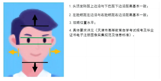 (3)身份認(rèn)證上傳的證件照作為考生存檔照片,將用于準(zhǔn)考證打印及其他各項業(yè)務(wù)辦理,須符合《天津市高等教育自學(xué)考試報考及畢業(yè)證書電子注冊圖像采集規(guī)范及信息標(biāo)準(zhǔn)》(附件1),不符合要求的照片將不能通過認(rèn)證。