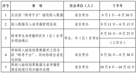 1.轉入考生應及時關注轉出省考生服務平臺本人轉考信息,轉出成功后,在規定日期內,到我省考籍所在市(區)自考辦辦理轉入確認手續。