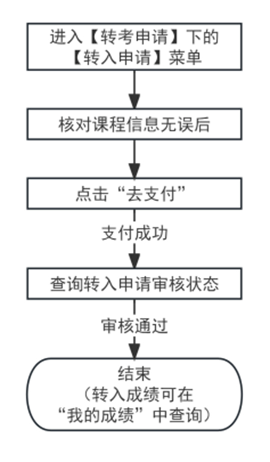 考生提交轉入申請并交費確認后,審核結果一般將于申請結束后三個工作日左右公布。考生可通過“自考考生服務平臺”—“轉考申請”—“轉入申請”查詢結果。