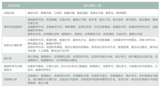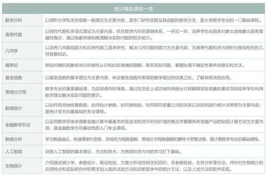 進入數學學院的學生前4個學期不分專業,都上相同的核心基礎課程。在第4個學期末,學生根據自己的興趣和意愿,自主選擇,進入所選專業方向學習。充分體現了學院“加強基礎、分流培養”的培養理念。