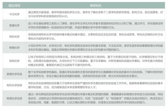 在課程設置上,秉承嚴謹求實、注重基礎的傳統,凝練并強化化學核心課程,教學內容以突出化學學科的基本知識框架和發展脈絡為基礎,使學生不僅具有扎實的基礎知識和技能,而且熟悉科學發展規律。