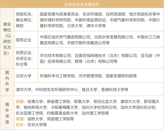 近年來(lái),畢業(yè)生赴國(guó)外哈佛大學(xué)、加州大學(xué)伯克利分校、普林斯頓大學(xué)等以及國(guó)內(nèi)著名研究機(jī)構(gòu)繼續(xù)深造。一大批優(yōu)秀畢業(yè)生投身我國(guó)污染防治工作一線,逐漸成長(zhǎng)為環(huán)境保護(hù)事業(yè)的重要建設(shè)者。