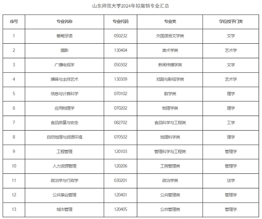8月25日,山東師范大學教務處發布《關于公示2024年度擬撤銷本科專業的通知》,擬撤銷葡萄牙語等13個本科專業。