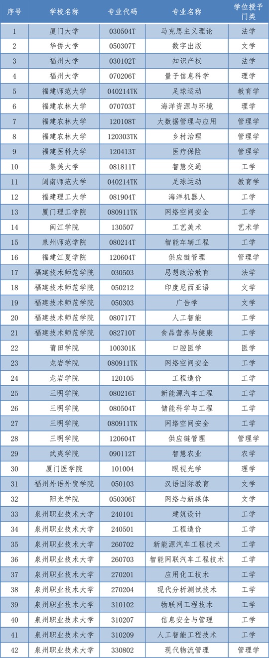 福建新增42個(gè)學(xué)士學(xué)位授權(quán)專業(yè) |